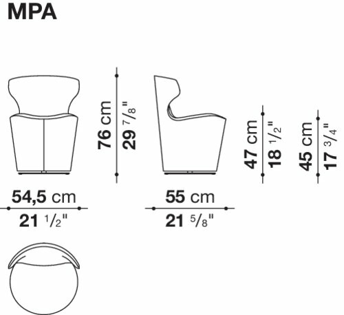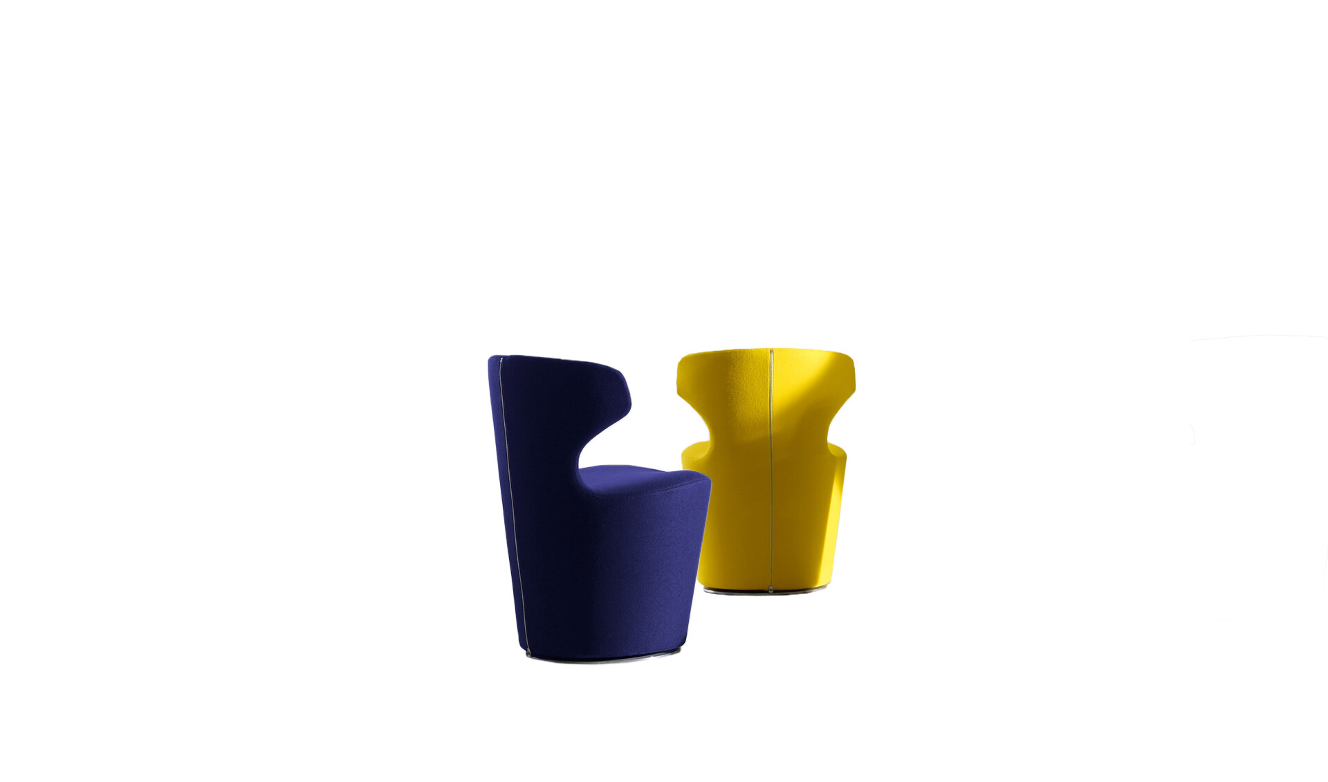 Upholstered either in fabric or leather and suited to both residential and public spaces, Mini Papilio echoes the characteristics of the iconic Grande Papilio armchair, only on a smaller scale. The playful design features a swivel base allowing 360 degree rotation with automatic return to the pre-set position. The image is that of a chair that welcomes you gracefully – with the graceful movement of a butterfly, or “papilio” in Latin. Fluidly designed around an upside-down truncated cone, the welcoming and sinuous shape of the seat and back ensures utmost comfort to the user. The wings that extend beyond the sides of the chair emphasise the feeling of comfort by supporting the hips and back.